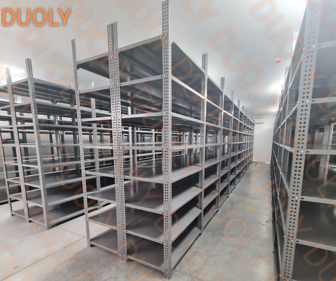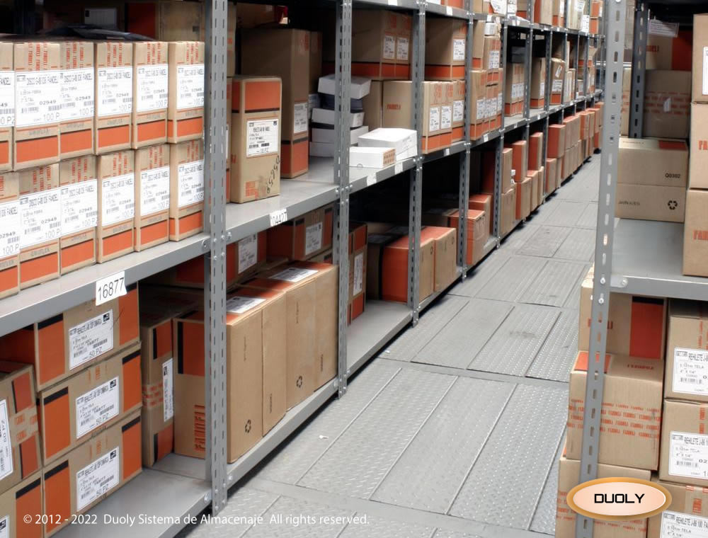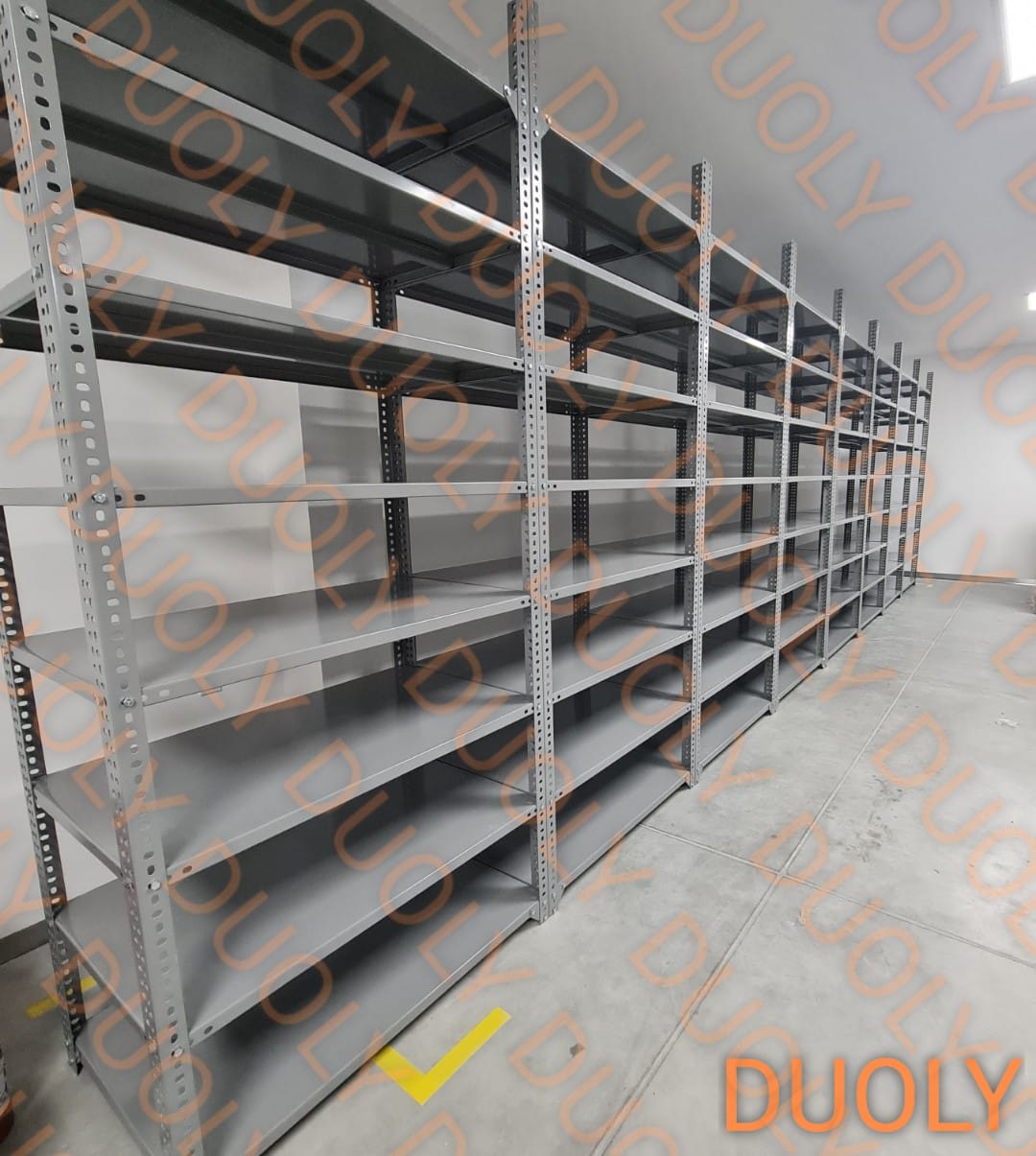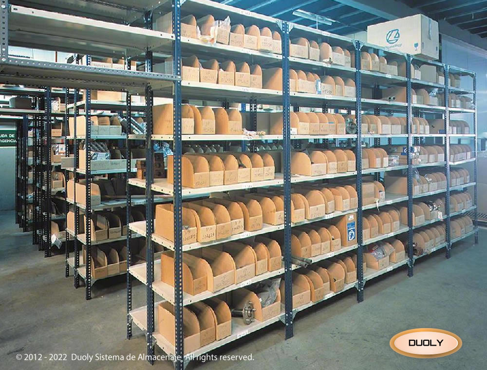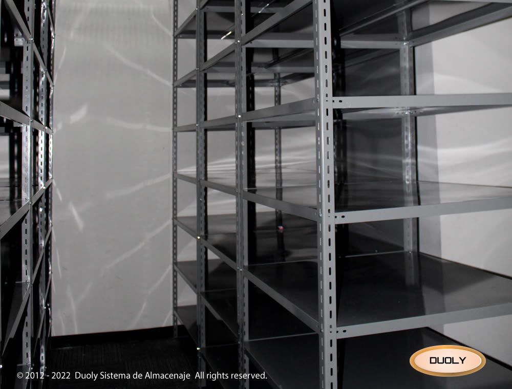 Es un sistema de ángulo ranurado y se utiliza cuando se requieren almacenar mercancías con diversas referencias y de poco peso. Este sistema se compone de ángulos metálicos ranurados, con perforaciones espaciadas a 44.4 mm y entrepaños metálicos atornillables a los ángulos que forman los niveles de estantería.